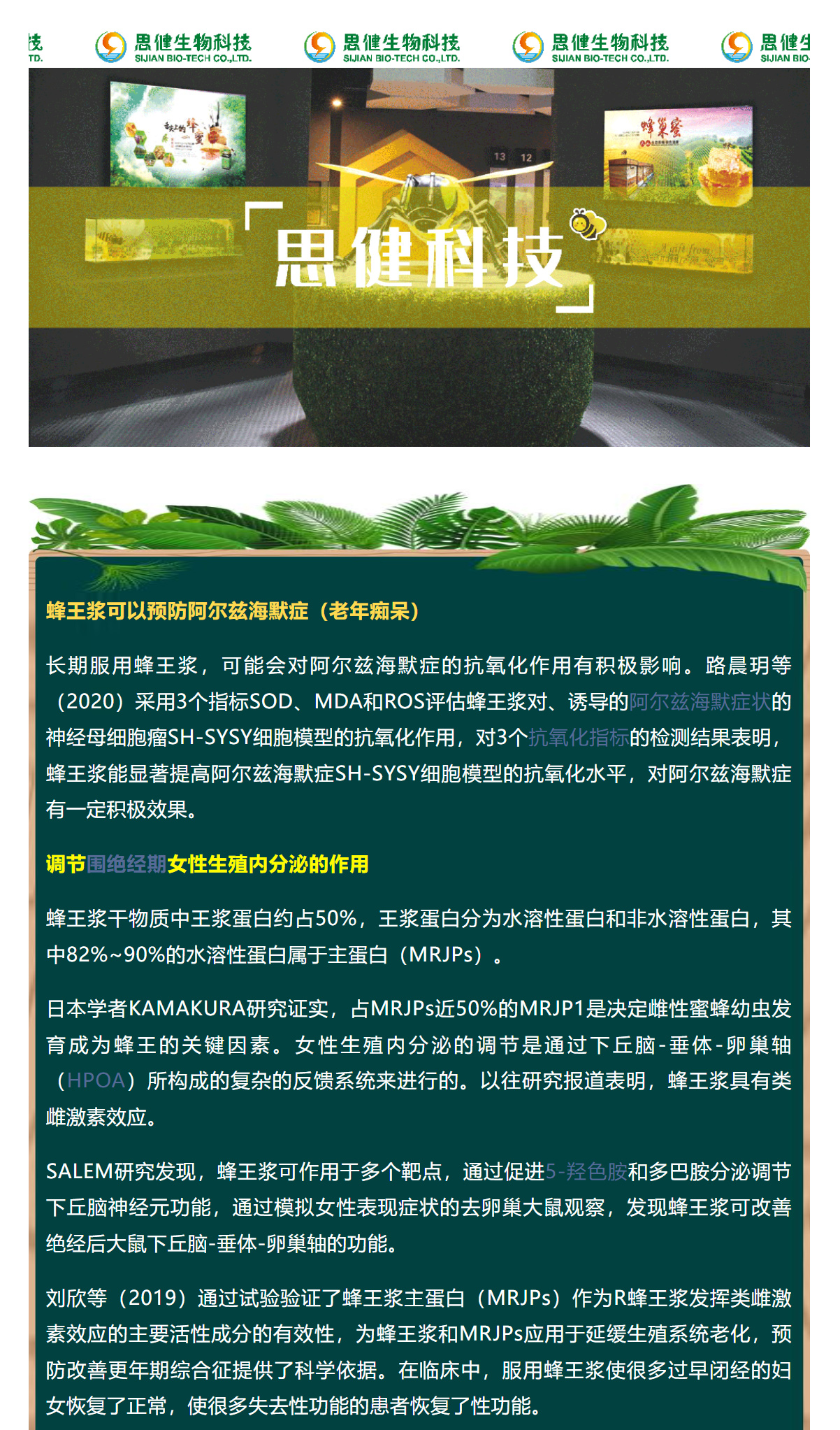 蜂王漿可以有效調(diào)節(jié)阿爾茲海默癥及更年期綜合征 !
