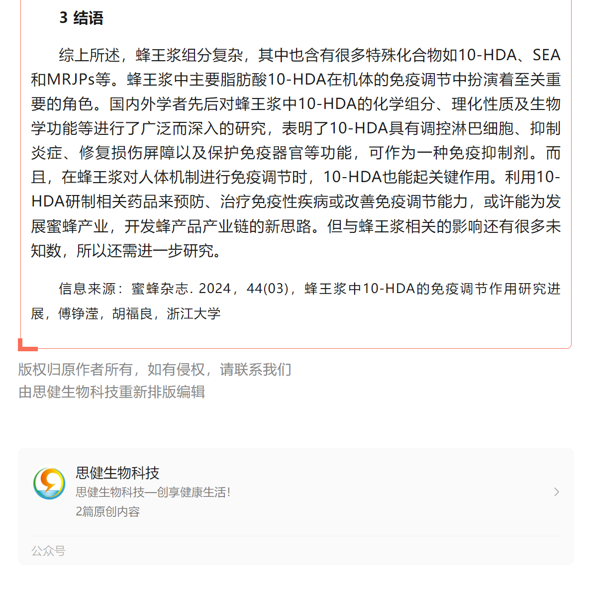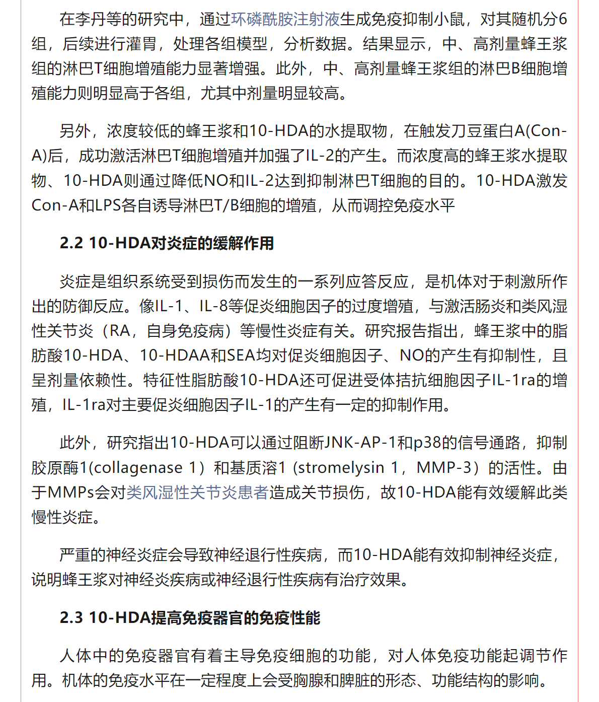 蜂王漿中10-HDA的免疫調(diào)節(jié)作用研究進(jìn)展