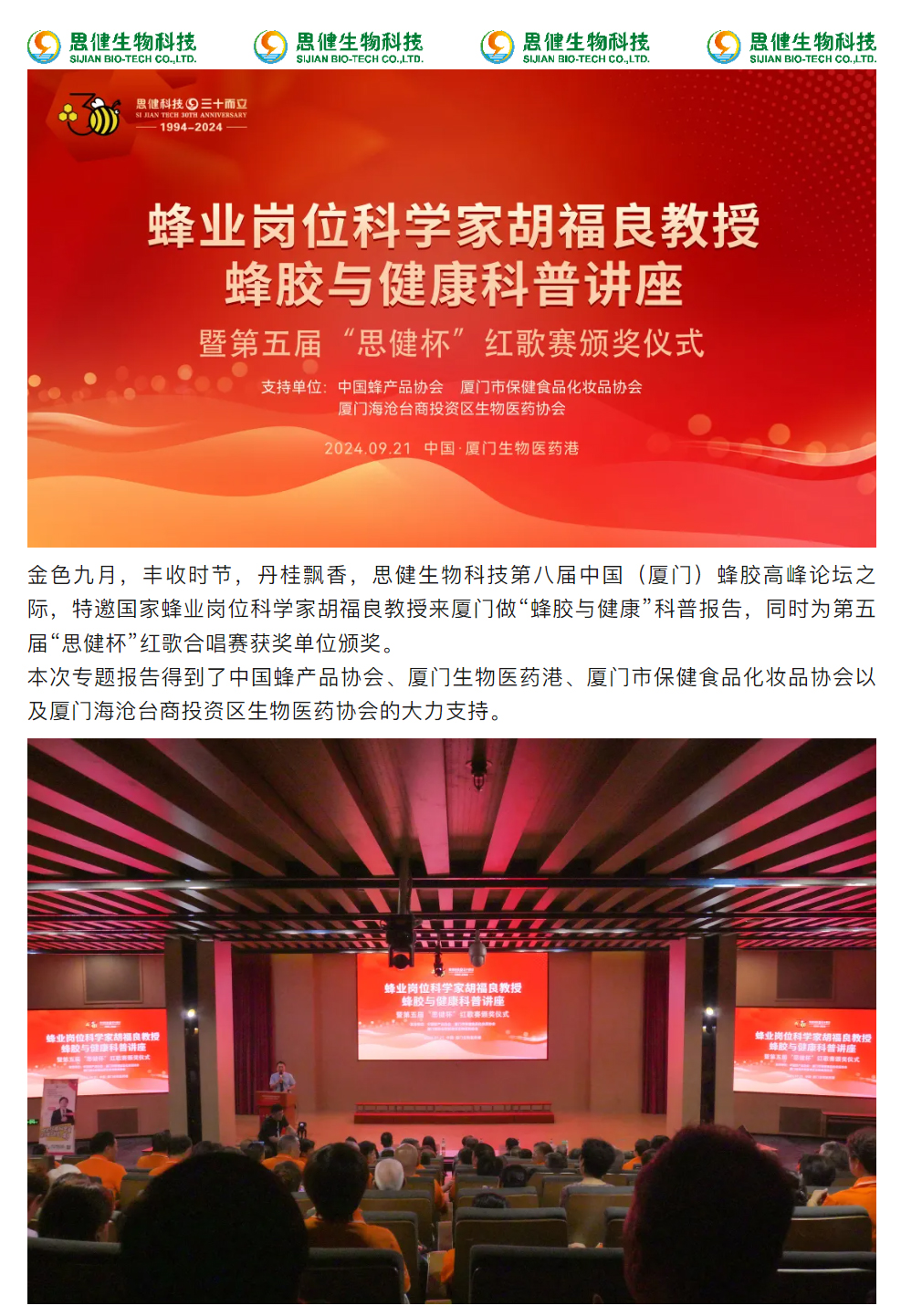 蜂業(yè)崗位科學(xué)家胡福良教授來廈“蜂膠與健康”科普報告圓滿成功